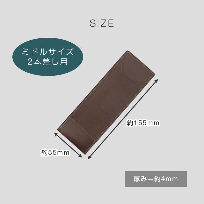 【ミドルサイズ】 超薄型ペンケース 【2本差し】【栃木レザー】本革 / 日本製