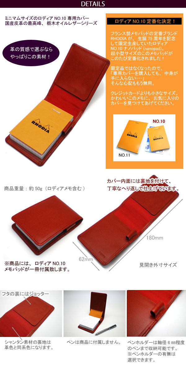 ロディア 10 カバー / 栃木レザー 本革 / メモカバー RHODIA No.10 ロディア メモ パッド / 革 日本製 国産 ハンドメイド 手作り [hc02]