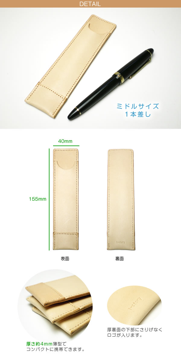 【ミドルサイズ】 超薄型ペンケース 【1本差し】【素ヌメ革】 本革 日本製