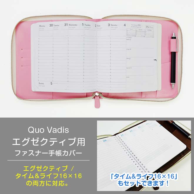【ファスナー】 【クオバディス】 エグゼクティブ 手帳 カバー 【本革 ヴァリアスカラー】Executive Time&Life タイムアンドライフ 16x16 / 日本製