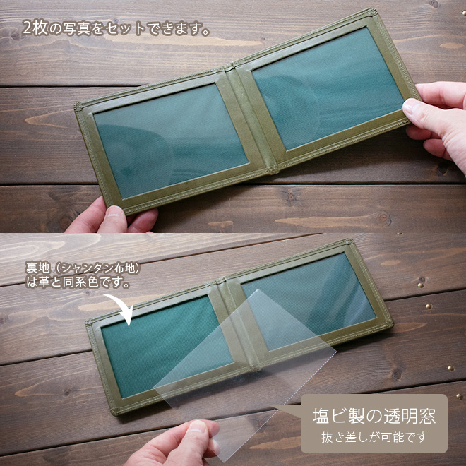 【ヨコ長・ L判 サイズ用 】 本革 フォトフレーム 【栃木レザー】 L版 サイズ 名入れ 可能 フォト フレーム フォトスタンド 2面 2枚 おしゃれ 写真立て 持ち運び 旅行 写真 持ち歩き 写真ケース ブロマイド 収納 / 革 レザー 日本製 手作り / ベビー [km03]
