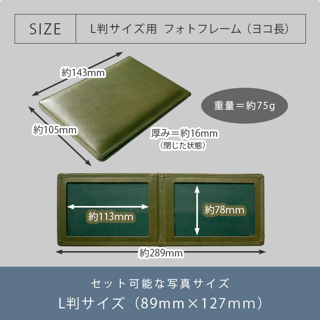 【ヨコ長・ L判 サイズ用 】 本革 フォトフレーム 【栃木レザー】 L版 サイズ 日本製 made in japan