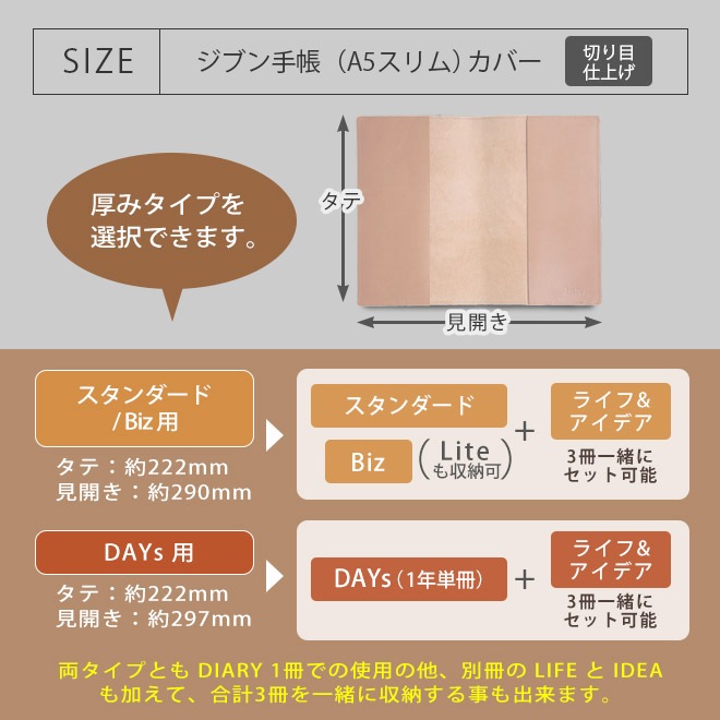 【切り目・素ヌメ革】ジブン手帳 カバー 本革 (A5スリム)ジブン 手帳 カバー Biz / DAYs / Lite 対応 / じぶん 自分 ビズ デイズ ライト / 手帳カバー ノートカバー / レザー 有料で 名入れ 対応 日本製 手作り オーダー 革 2025 [kc01]