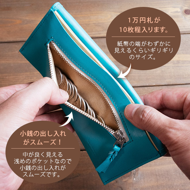 【小銭入れ付】コンパクト 長 札入れ 【ヴァリアスカラー】本革 一万円札 ぴったり 極小 極薄 メンズ レディース 日本製