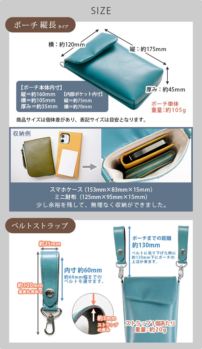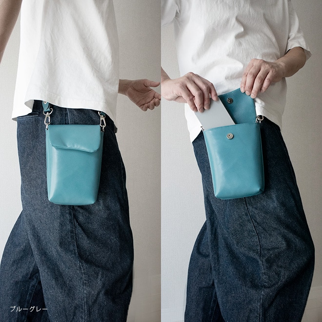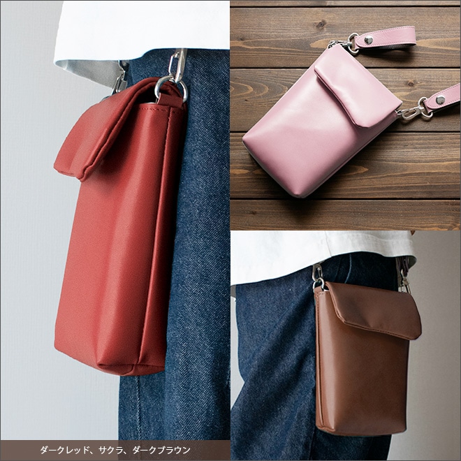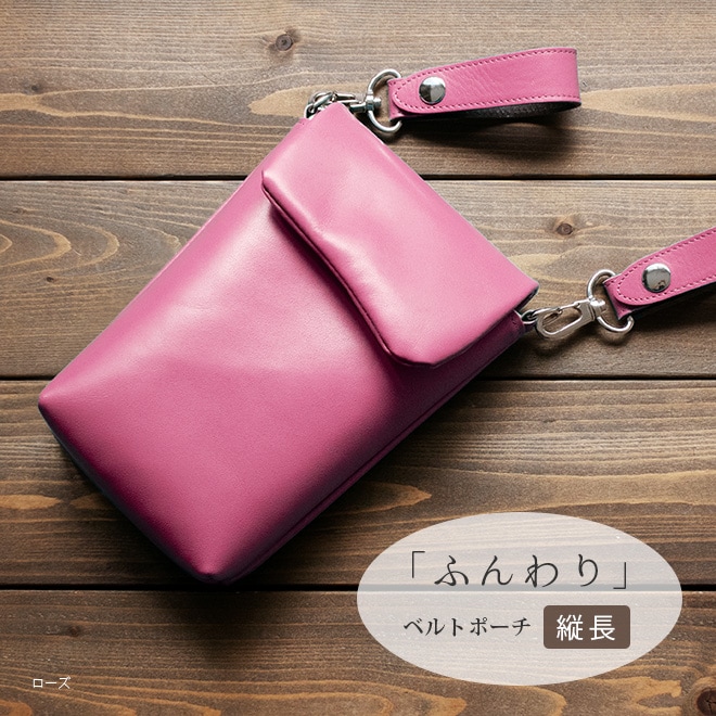 【タテ長】 ベルトポーチ 本革 【ヴァリアスカラー】ふんわり 小さい レザー ベルトバッグ / 日本製