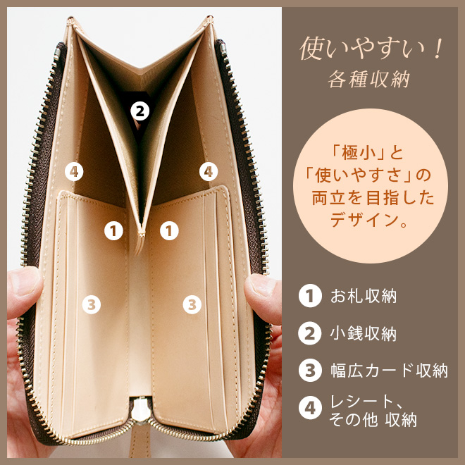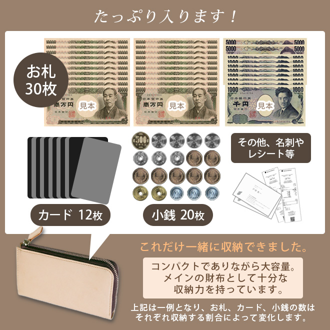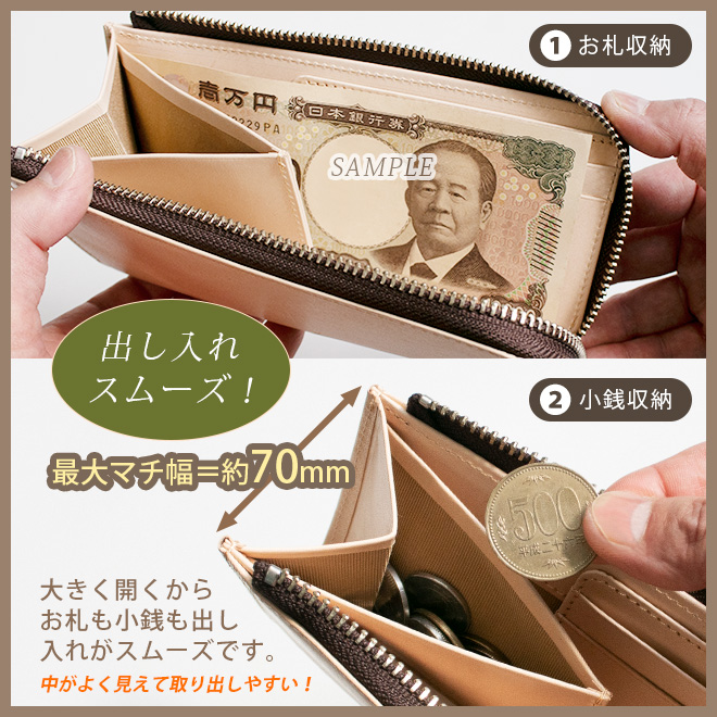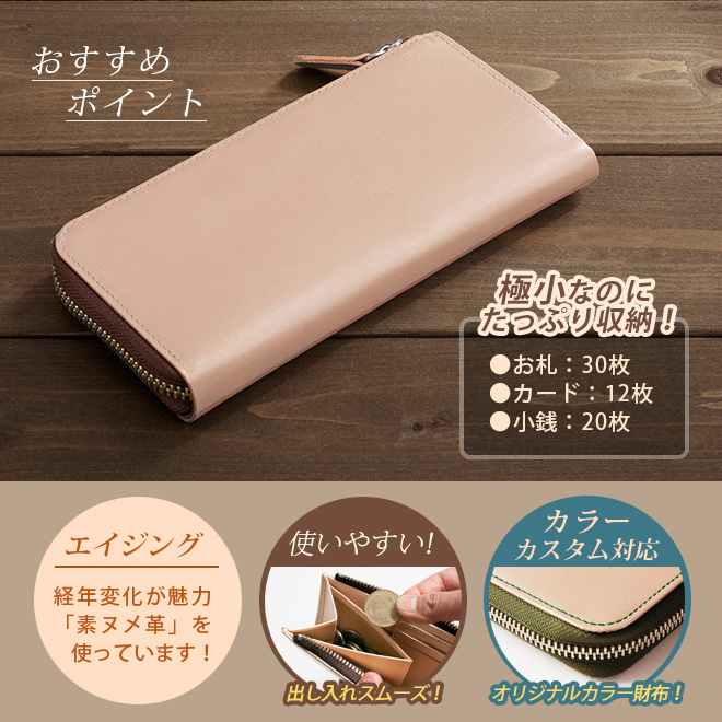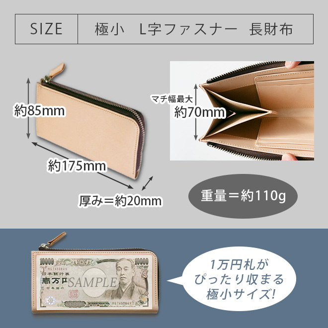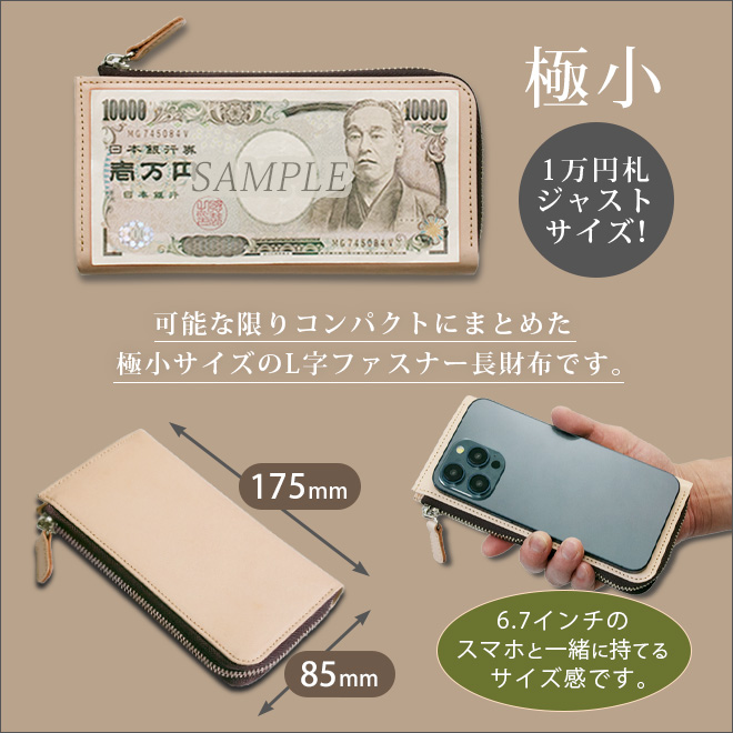 【極小】L字ファスナー 長財布【素ヌメ革】小さい長財布 / 日本製